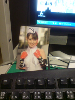 写真は、資料に持って来たナオミちゃんをキーボードの下に隠していたら、そのまま忘れて、今日パソコンやって左側を見ると飾ってあったの図。